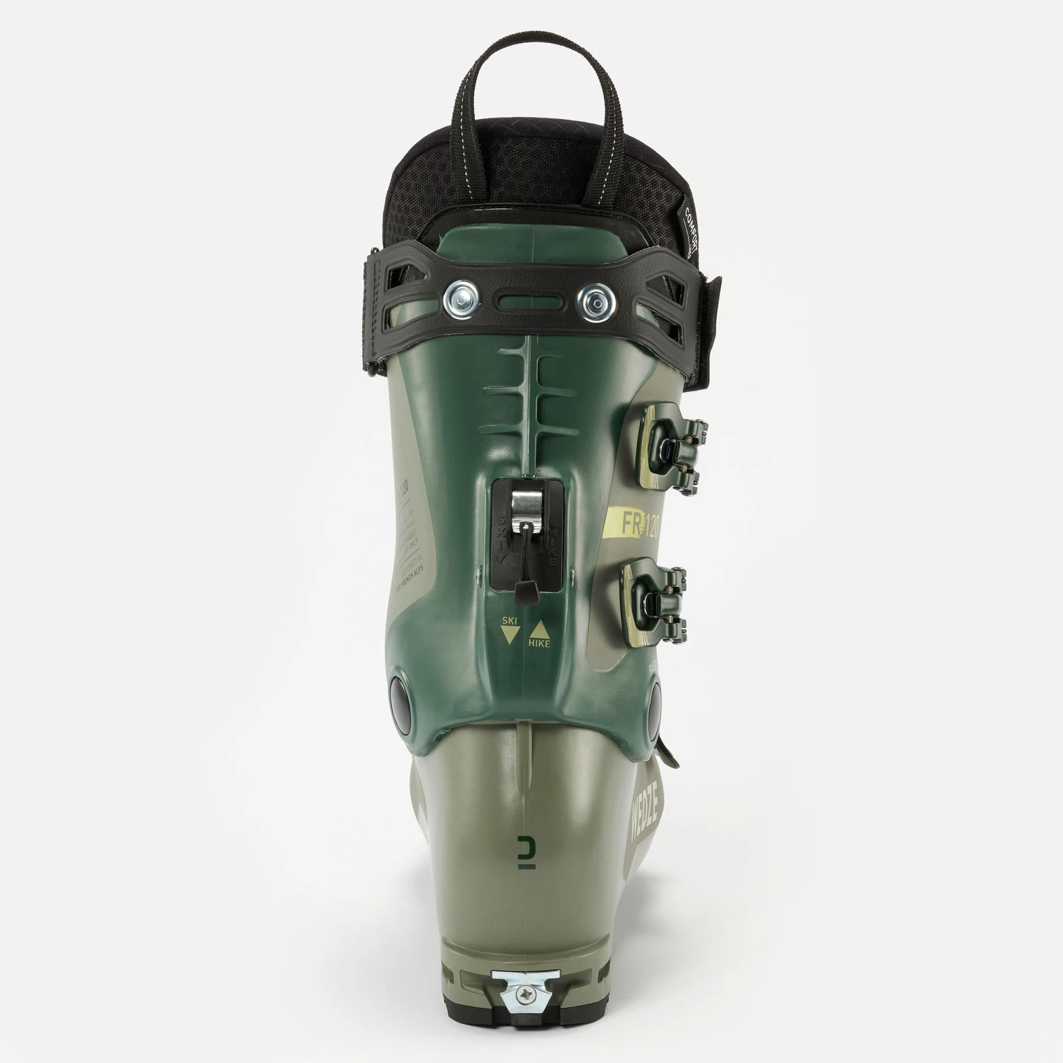 3 micrometric aluminium buckles and one 3-position buckle at the shin to fit every calf size. Wide strap for powerful and easy tightening of the top of the shell. Walk position on the shin hook (Walk in red) to increase the movement of the collar.