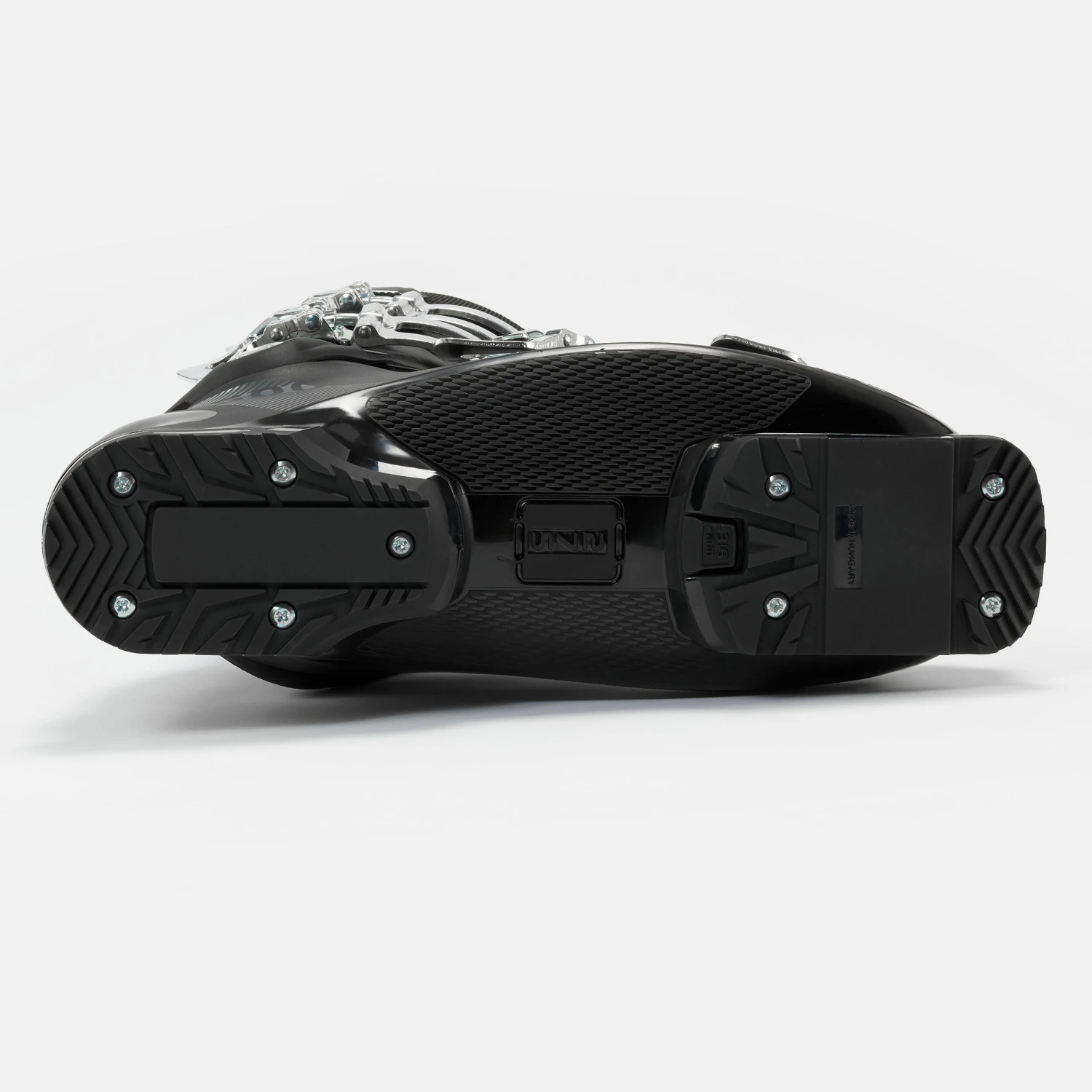The 500 ski boot has 4 aluminium micrometric buckles for powerful and precise tightening. You can adjust the length of the buckle by screwing or unscrewing it in order to personalise the tightness of the fit. The 2 top hooks have 3 positions to fit every calf size (requires a screwdriver). A wide, adjustable strap at the top of the upper makes for strong and easy closure at the top of the shell.